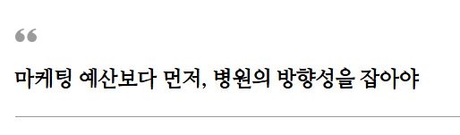 마케팅 비용을 두 배로 올린다고 매출이 두 배 오르지는 않거든요. 중요한 것은 우리 병원의 방향성을 먼저 명확히 하는 것입니다.
