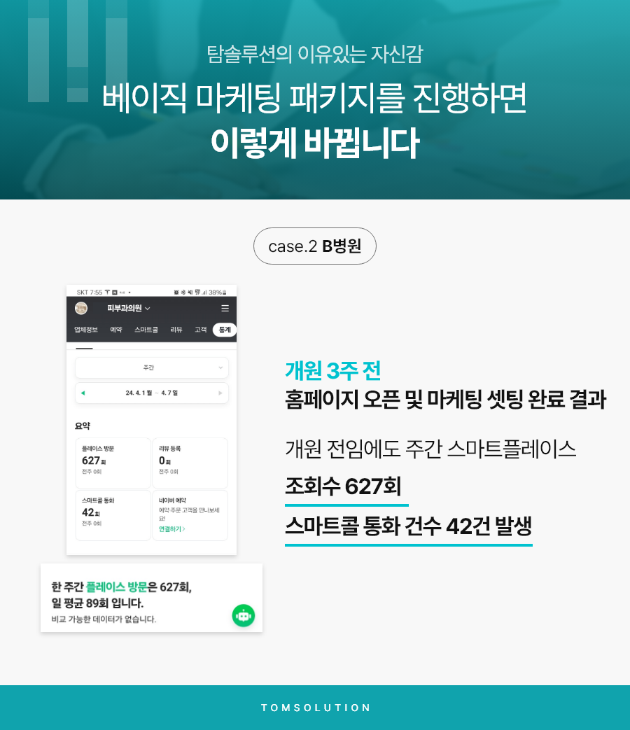 오늘은 흔한 마케팅 조언이 아니라, 탐솔루션이 14년 동안 쌓아온 병원 전문 마케팅 노하우를 담은 실제 사례를 보여드리려고