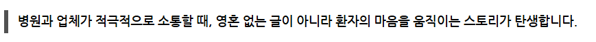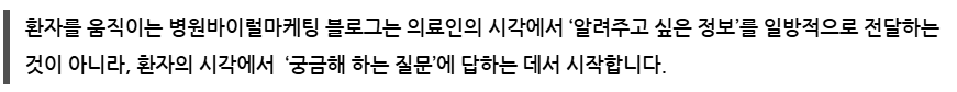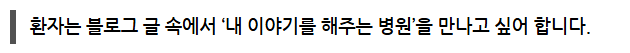 따라서 보여주기식 홍보성 글로는 환자의 마음을 얻기 어렵습니다.